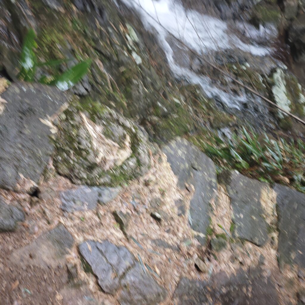到了稍微往下的地方,路沿着溪水走,而溪水涨上来了,把有的路給淹了。路上还衰了一次